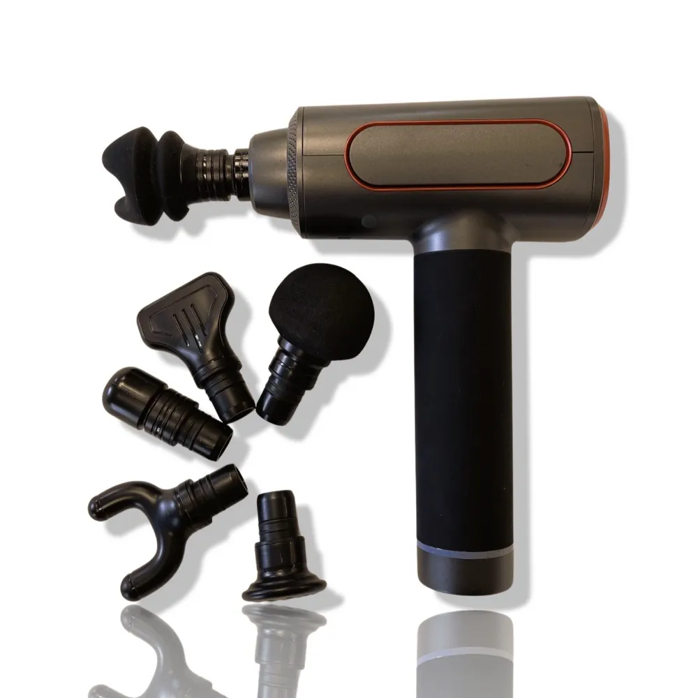 Vår massagepistol skapar förutsättningarna för en koncentrerad, men också mer djupgående massage. Detta kan samtidigt styras med de sex medföljande massagehuvudena.